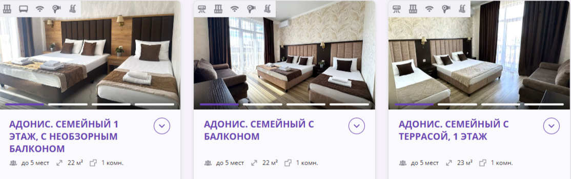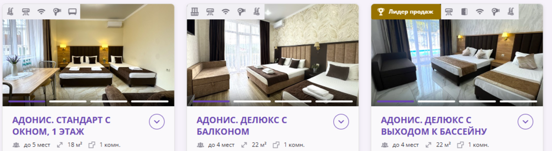 Корпус «Адонис» (4 этажа) построен в 2023 году, современный, с просторными номерами: